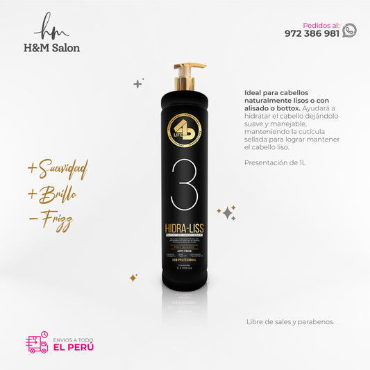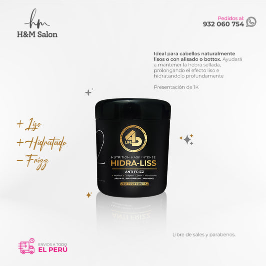 La línea HIDRA-LISS de 4D Life está especialmente formulada para el cuidado post alisado, prolongando el efecto liso y manteniendo el cabello hidratado, suave y sin frizz.