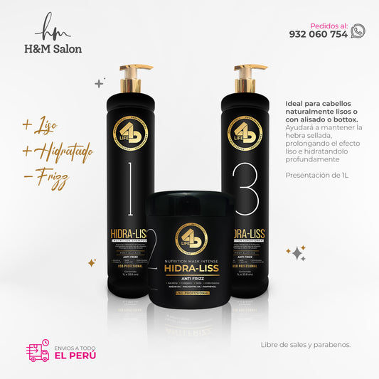 4D LIFE PROFESSIONAL - TRIPACK HIDRA-LISS shampoo + mascara + acondicionador 1 L