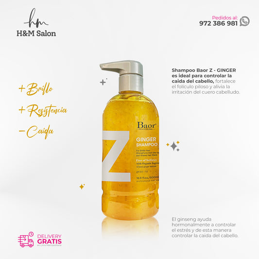 Baor Z - GINGER cuenta con una formulación avanzada y nutritiva a base de kión, controla el desprendimiento del folículo piloso dejando un cabello resistente, suave y brilloso.