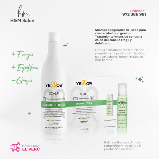 YELLOW - SCALP Balance Shampoo para cuero cabelludo graso 500ml + Energy Lotion 6x13ml