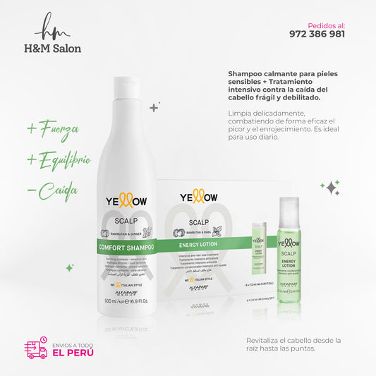 YELLOW - SCALP Comfort Shampoo para piel sensible 500 ml + Energy Lotion 6x13 ml